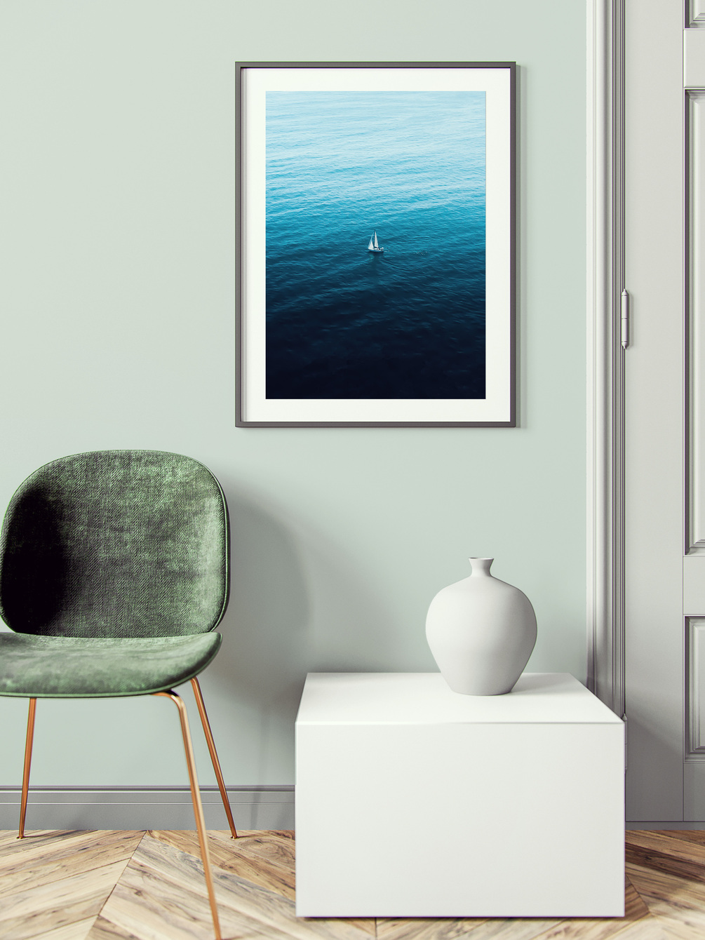 Enjoy this beautiful serene moment of a lonely sail boat venturing out into the vast ocean by placing it in the heart of your home.